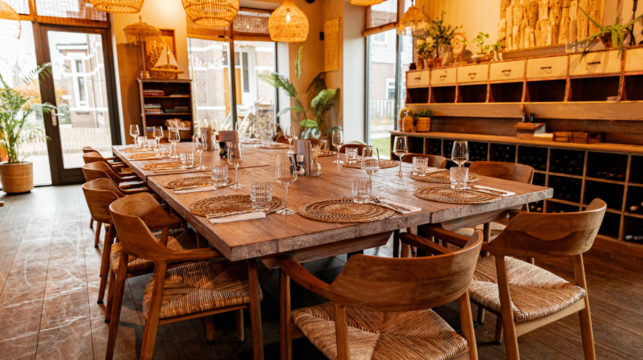 Hoogenbooms moeder, die een winkel in woonaccessoires heeft, verzorgde het interieur. Zo kreeg de zaak warme houttinten, een eiken vloer en veel natuurlijke materialen. Veel meubels en accessoires zijn geïmporteerd uit Indonesië, het land waar je overal de boho-stijl terugziet.