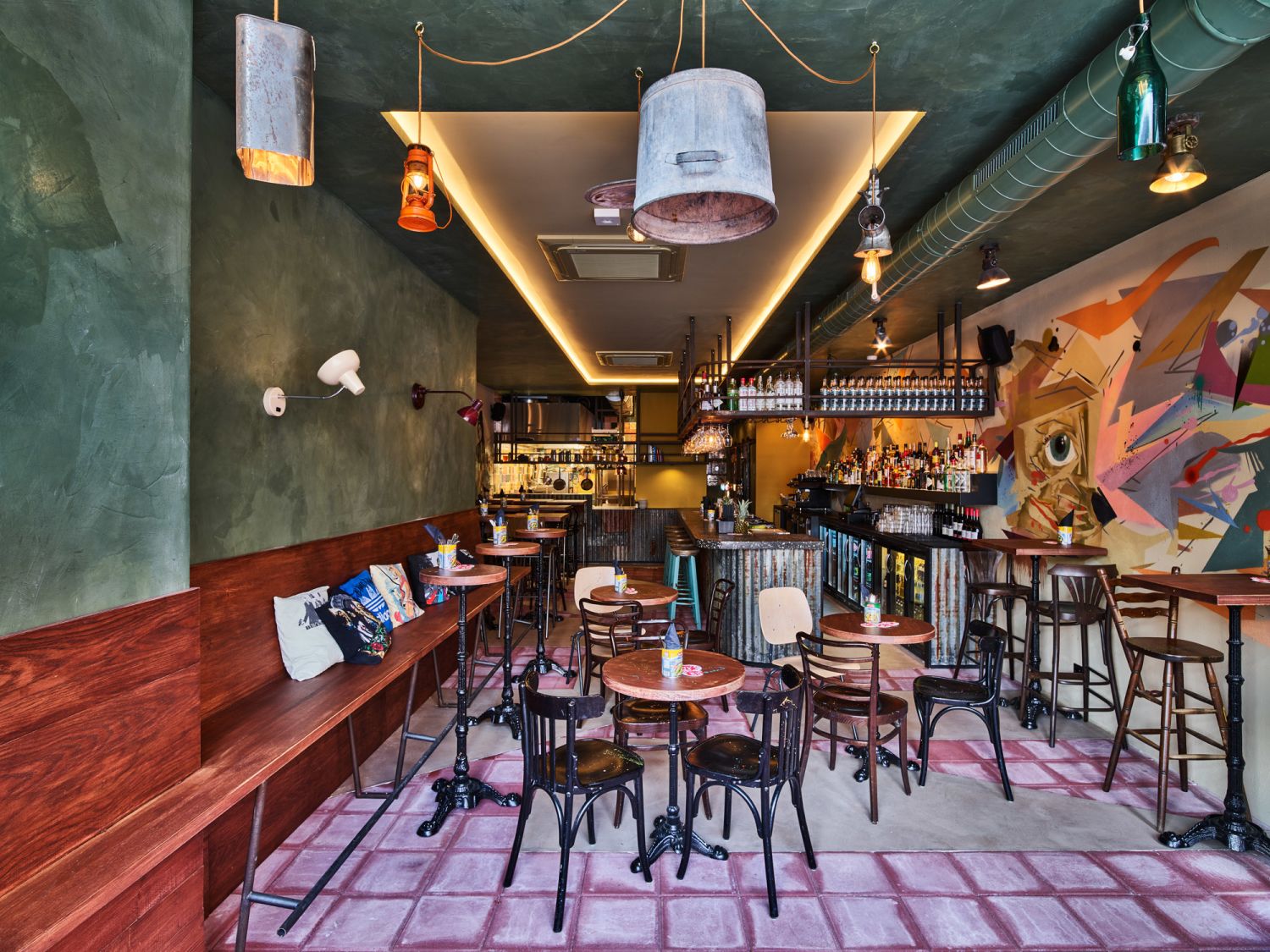 Als reflectie van de rauwe kant van tegenstrijdig Tel Aviv, is Bardak een prachtig georganiseerde chaos ontworpen door Sheryl Leysner. De ruwe graffitimuren, stukken kale bakstenen en golfplaten is het decor van een wandeling door Tel Aviv. Leysner's inspiratie vond ze in reizen en iconische interieurontwerpen uit de 20e eeuw, maar vooral in de levensverhalen en ambities van mensen die ze ontmoet. Qi-FRAME is verantwoordelijk voor de streetart in het restaurant. Een doordachte wirwar van meubels heeft plek voor 55 gasten.