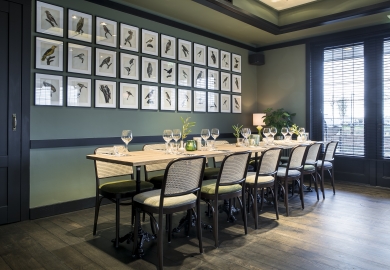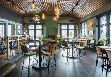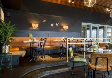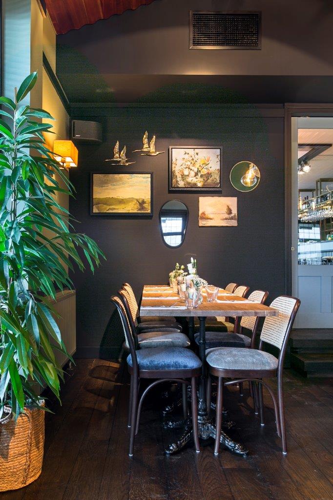"De vertrouwde, gemoedelijke, huiselijke en gastvrije sfeer is gebleven, maar het restaurant aan het water heeft een heel nieuwe look & feel gekregen", vertelt Sjoerd van Barneveld van Debuut. De houtkleuren hebben plaatsgemaakt voor zachte aardse kleuren, met veel groen en blauw. De vloeren zijn diep donker gekleurd en de witte kozijnen zijn verdwenen. Een mix van verschillende stijlen meubilair, een fraaie leestafel en de bar als nieuwe eyecatcher, maken van het vernieuwde BoatHouse een plek waar je graag wilt zijn.