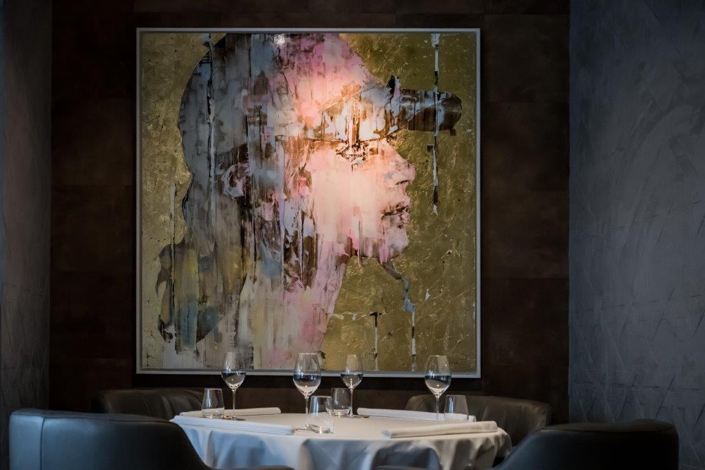 Mustert: “Na tien jaar was het tijd voor een nieuw interieur dat weer met de tijd mee kon. Ik wilde geen hip trendgevoelig interieur, maar een bijzonder en stijlvol interieur met een exclusieve uitstraling. Ik vind dat we daar in geslaagd zijn, het resultaat is geweldig mooi geworden.”Eyecatchers zijn het 4,5 meter lange kunstobject van leer met 24 karaats bladgoud en het nieuwe plafond met een meterslang lichtobject dat staat voor de signatuur van de eigenaar.