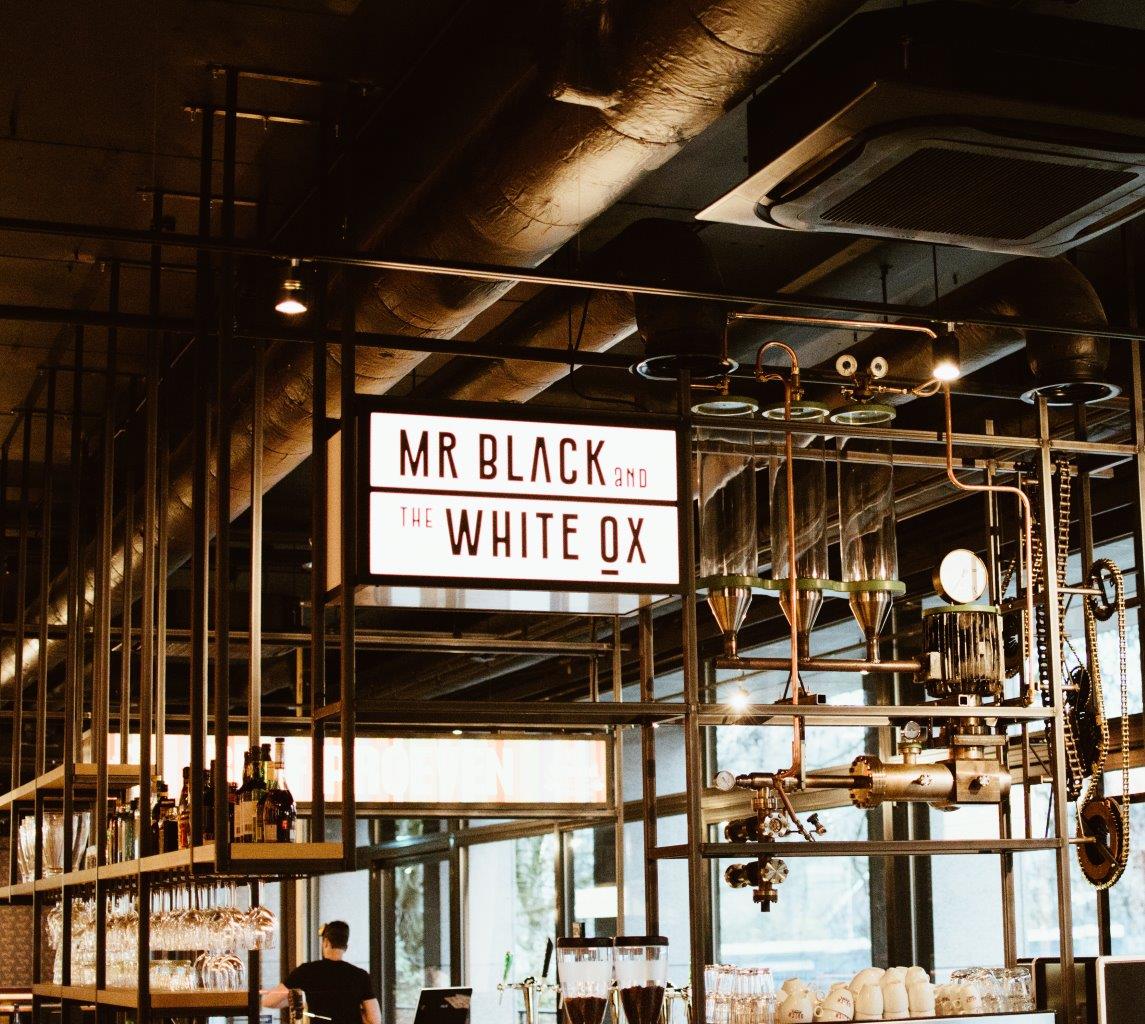 Op de begane grond is Mr. Black & The White Ox gevestigd. Dit cosmopolitische restaurant met bar heeft een stijlvolle inrichting en een heerlijk terras aan het water. Mr. Black komt van zwarte koffie en The White Ox is vernoemd naar De Witte Os, het winkeltje in Joure van Egbert Douwes waar het in 1753 allemaal begon.