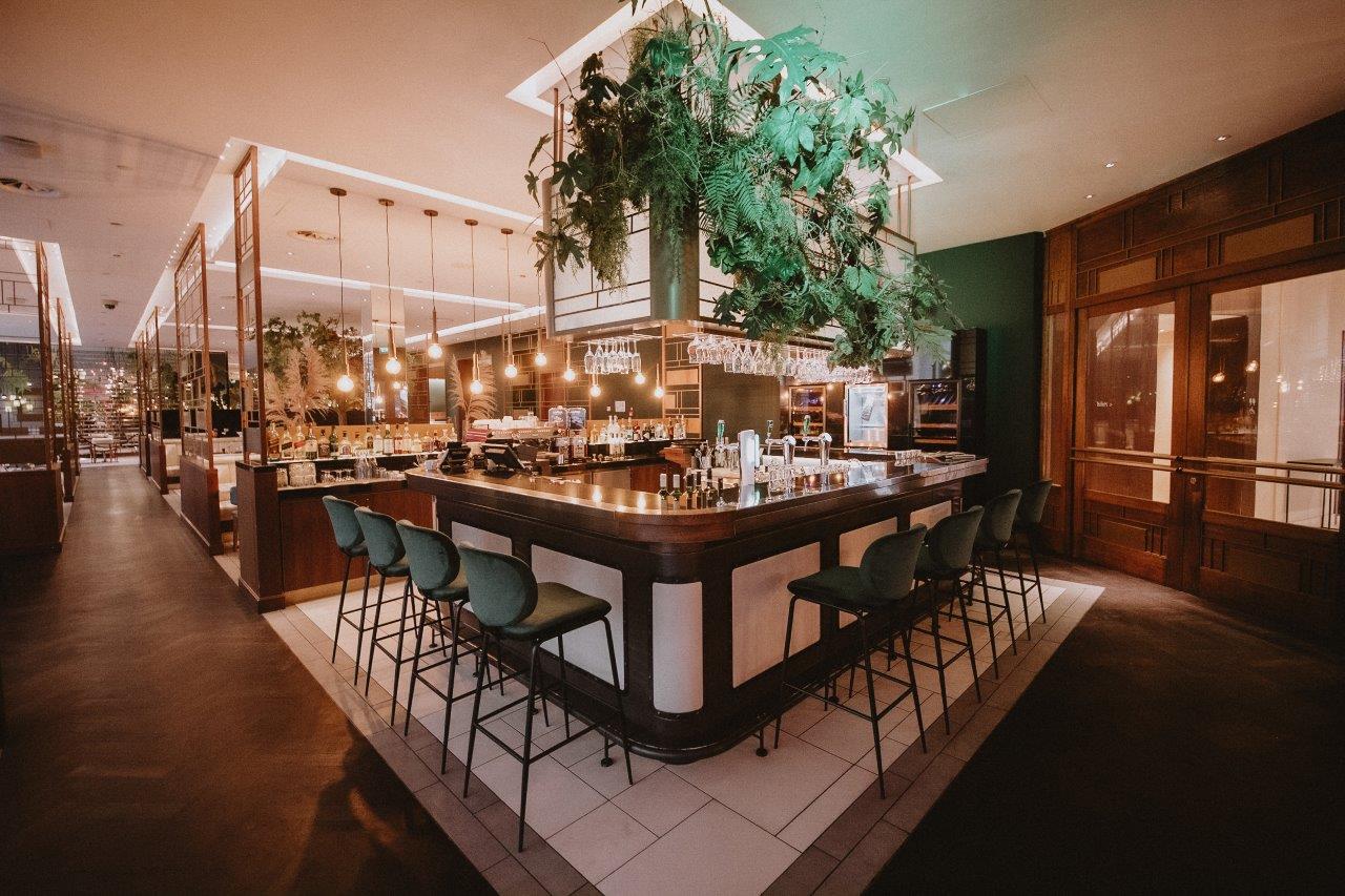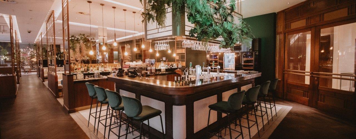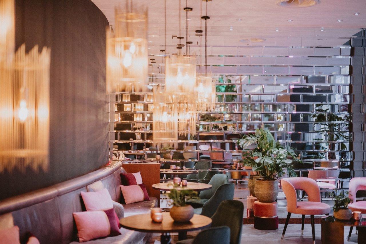 De Rotterdamse stylist Marcella Kanters ontwierp voor JAQ het bargedeelte, samen met bloemen- en plantenspecialist ’s Zomers Bloemen. De industriële, betonnen vloer wordt verzacht door comfortabele stoelen met fluwelen roze en groene zittingen. De gouden verlichting, de grote spiegelwand en gouden details zorgen voor een classy Rotterdamse sfeer. Want Rotterdammers, die houden wel van een glimmertje. Opvallend zijn de door streetart geïnspireerde schilderingen op de muur en het gouden neon kunstwerk met ‘Hello Gorgeous’ in de hal.