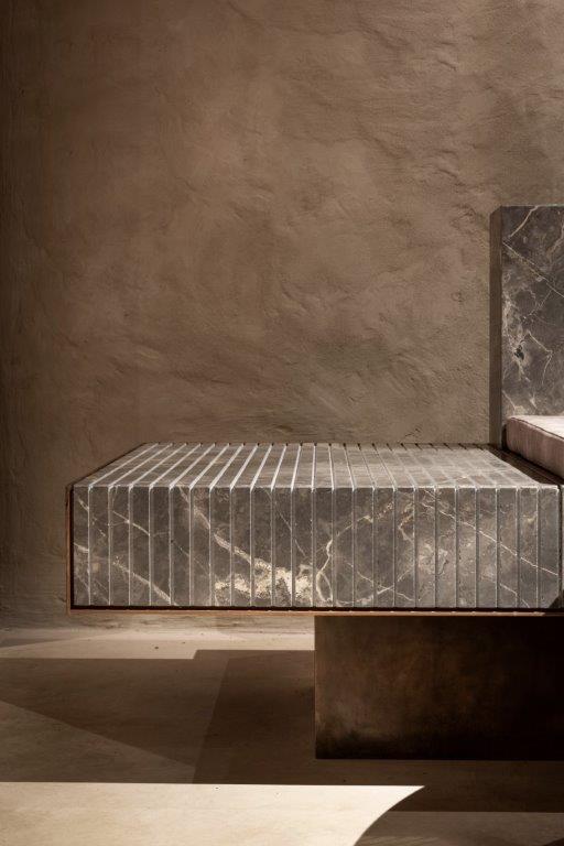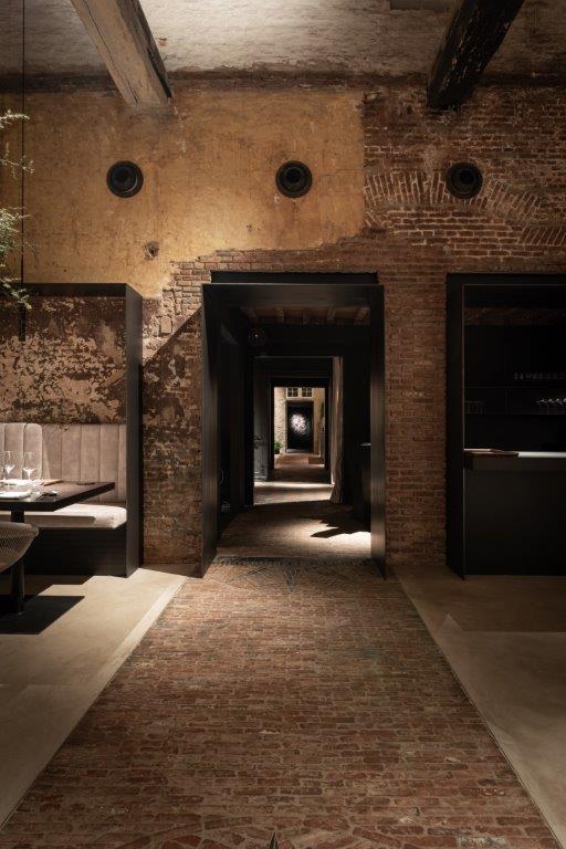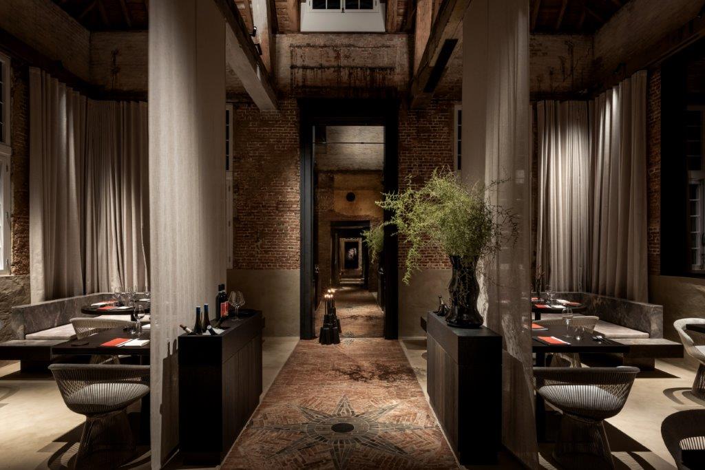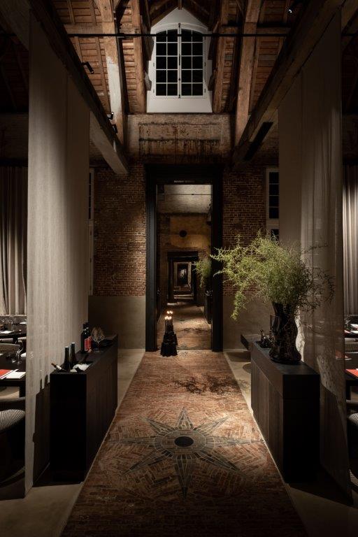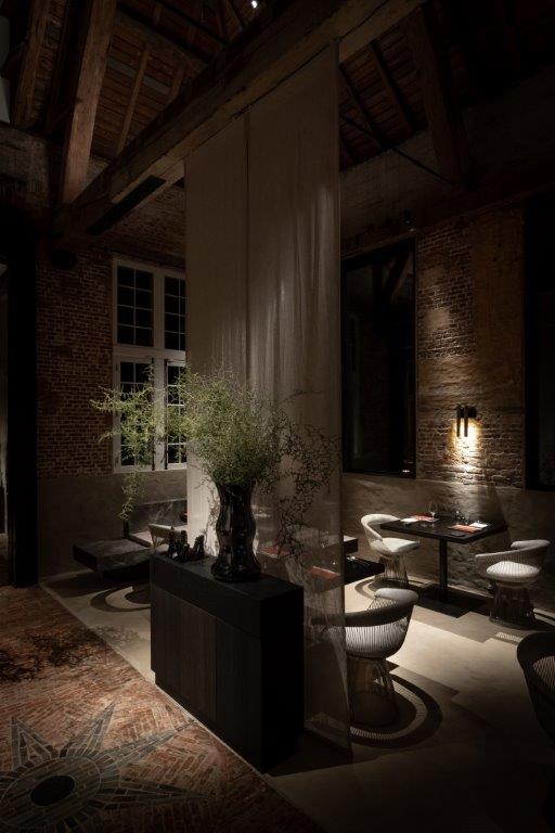 Architect Dieter Vander Velpen, bekend van onder meer het hoofdkwartier van Tomorrowland, koos ervoor om het historische karakter van het koetshuis optimaal te respecteren en aan te vullen met nieuwe elementen. Vander Velpen gebruikt uitsluitend ruwe, nobele materialen zoals hout, natuursteen en brons. Met eye catchers zoals de vuurhaard, de grote wandspiegel of het toogmeubel ontworpen door Arno De Clerck die als ontwerper projecten uitvoert voor de allergrootste wereldsterren in Amerika.