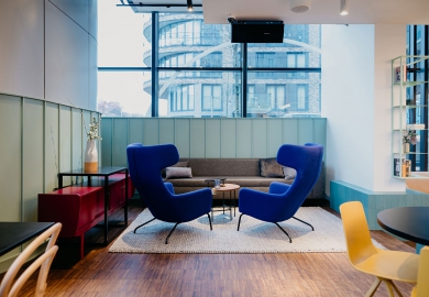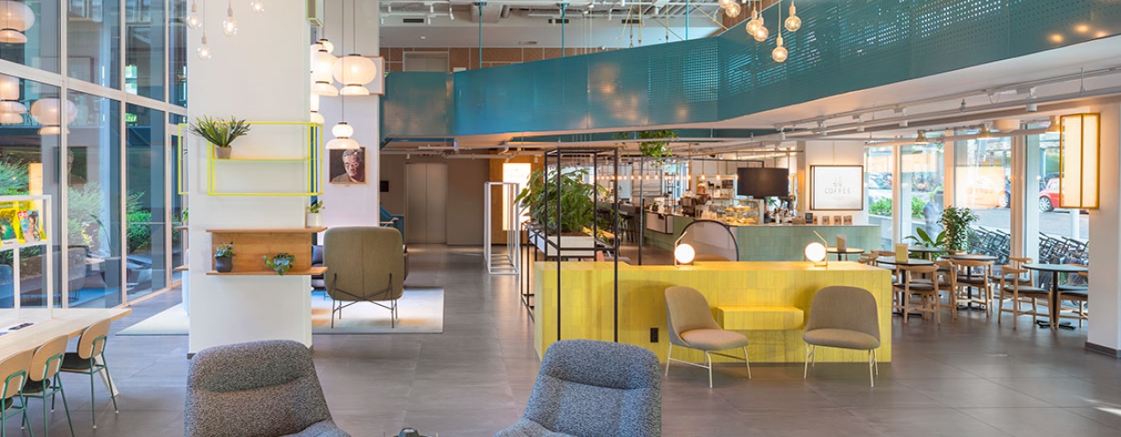 In het nieuwe ontwerp van de eetruimte en vergaderzalen van Hotel Casa staat connectiviteit centraal. Ninetynine tekende voor het design. Er is een centrale ruimte voor alle bezoekers om te verblijven. De focus ligt minder op specifieke functies zoals een bar, restaurant of incheckruimte. In plaats daarvan is de hele ruimte veranderd in een woonkamer met moderne en kleurrijke meubels.