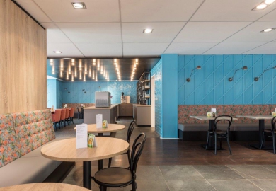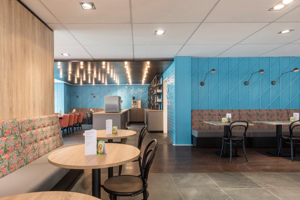 Bij lunchroom Lekker Anderz in Stadskanaal werken mensen met een verstandelijke beperking. Een zaak met zo’n naam vraagt om een bijzonder interieur. Projectinrichter Homint mocht dat verzorgen. “Eigenaresse Marjan ten Seldam wilde de vrolijkheid van haar medewerkers graag vertaald zien in het interieur”, zegt interieurarchitect Hiskje Hooijsma van Homint. “Daarom hebben we gekozen voor veel kleur en bijzondere patronen in de zaak, zonder het te druk te maken: er moest wel ruimte en rust in de inrichting komen, om het voor de medewerkers overzichtelijk te houden.”