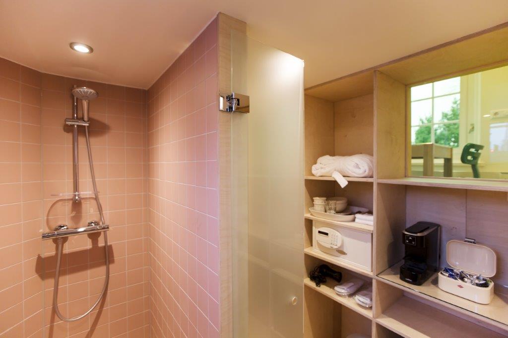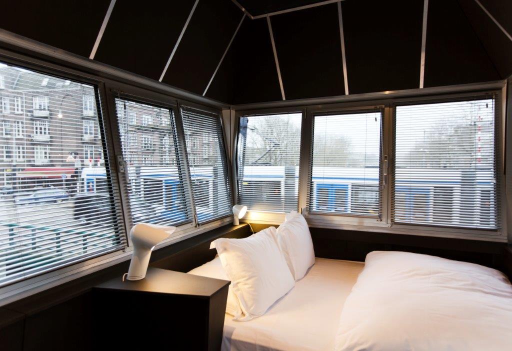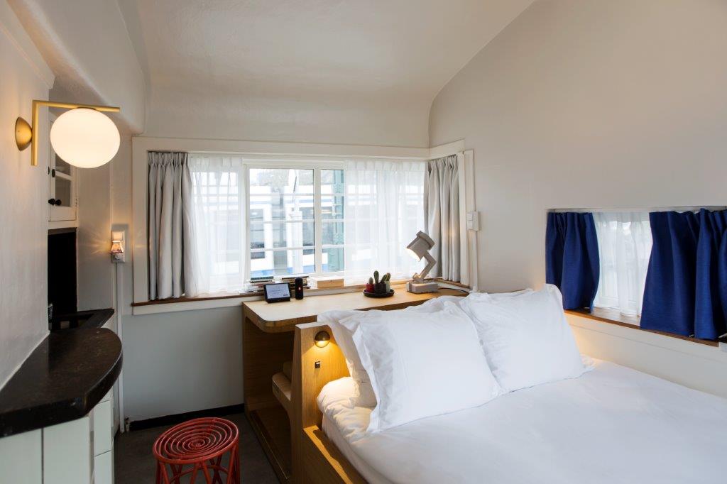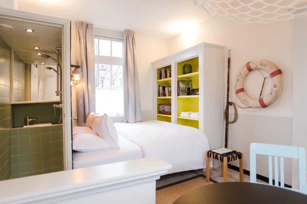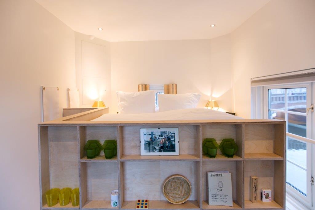 Ze vervolgt: "Het kleinste pand is bijvoorbeeld twaalf vierkante meter. We zijn daarom met de architecten letterlijk de diepte en de hoogte ingegaan, bijvoorbeeld door een stuk uit de grond te graven en het plafond te verhogen, zodat de kamer nu uit drie verdiepingen bestaat. Daarnaast hebben we dankbaar gebruik gemaakt van het weidse zicht over het water, waardoor de huisjes ruimtelijker lijken."