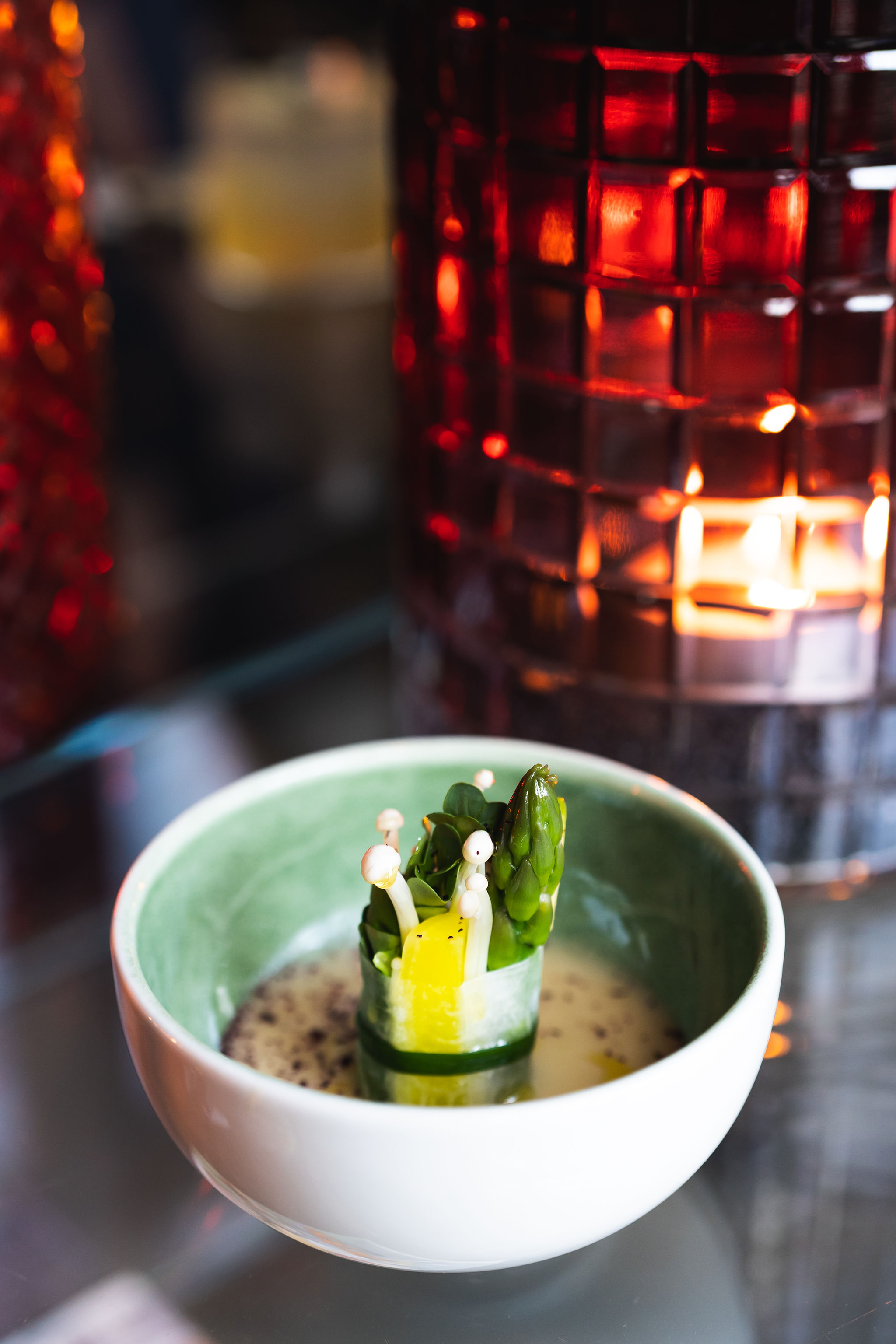 Bij Taiko Bar, wat een Japanse verzamelnaam is voor verschillende percussie-instrumenten, staat alles in het teken van de heilige drie-eenheid: Aziatische smaken, internationale luxe en lokale roots. Door de Aziatische invloeden, ligt de beleving dichtbij het high-end nachtleven van Shanghai en Tokyo met de intieme setting van een Amsterdams avondje uit. En dat allemaal onder het dak van het Conservatorium hotel. Met zeventien volledig nieuwe cocktailcreaties met namen zoals So Long Ken Jeong, Lost in Translation, Kho San Road en Hatsumomo, heeft het Taiko Bar-team een bijzonder cocktailmenu ontwikkeld. Naast cocktails worden ook Asian barsnacks geserveerd, bestaande uit sushi, sashimi en dim sum.
