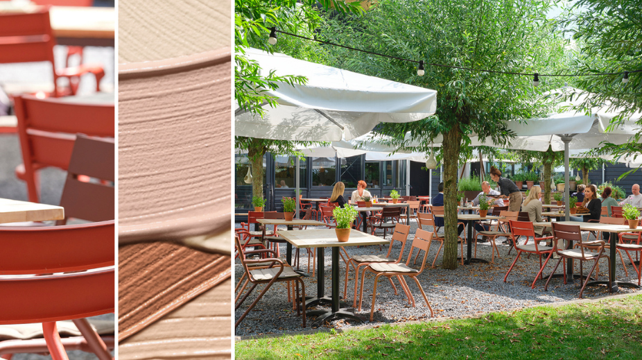 Wees kleurrijk, op classy wijze. Populair zijn nude tinten zoals roze die worden gecombineerd met stoere, opvallendere kleuren als burgundy en terra. Creëer een trendy terras met sfeervolle contrasten. De solide, aluminium Girola – met een palet van wel 13 tinten - past perfect in het Classy Colourful-plaatje en schittert op het volledig gerestylede terras van restaurant Het Hooihuis in Roosendaal. Op deze locatie, omringd door natuur, is het kleurrijk en comfortabel genieten.