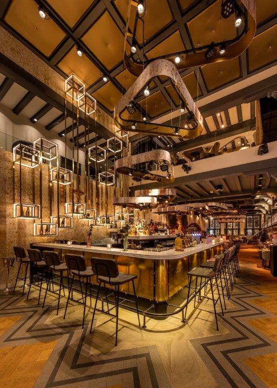 Een van de eyecatchers zijn de lampen aan het plafond door de hele ruimte én de stellages van led-verlichting met vierkante elementen bij de bar, die door dEP zijn gemaakt. Naast het restaurant zijn er sinds vorig jaar ook 8 hotelkamers te vinden in het pand. ’t Goude Hooft kent een lange geschiedenis en bestaat al sinds de 15e eeuw. tGoudeHooft.nl