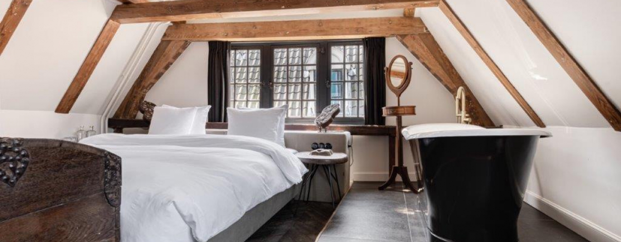 Doordat de geschakelde panden veel hoogteverschillen kennen, kenmerkt het hotel zich door sluipdoor-kruipdoor gangen, sfeervolle (zit)hoeken en een monumentaal trappenhuis onder de originele balkenstructuur.