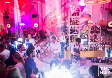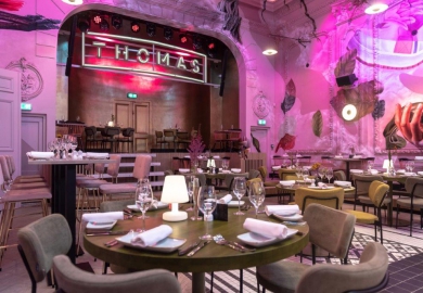 Dat resulteerde in levensgrote, abstracte versieringen van grond tot plafond. Ook de rest van het interieur is kleurrijk en warm. Daarnaast bestaat het voornamelijk uit meubels met verschillende, organische vormen. “We wilden wegblijven van dat kille industriële dat je veel ziet en écht iets anders doen”, verklaart Van Boxtel. En dat is zeker gelukt, want Thomas is genomineerd voor Best Restyling bij de Entree Awards 2018.