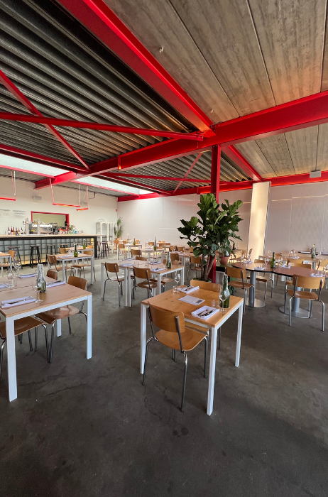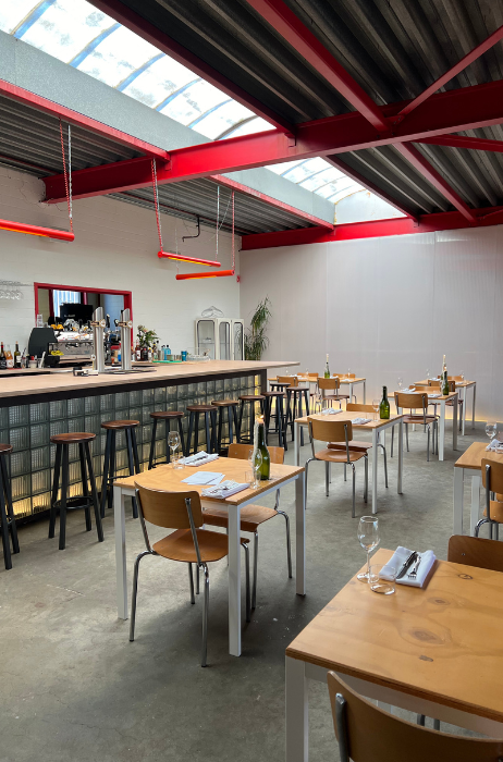 Een oude metaalwerkplaats in Amsterdam-Noord transformeerde vorig jaar tot restaurant V12. In het interieur van deze nieuwe hotspot vind je nog veel oude details, zoals de rode ijzeren pilaren op de foto's. De drie vrienden die samen V12 runnen gaven het restaurant niet alleen een stoer industrieel uiterlijk, maar zorgen daarnaast voor een warm welkom voor hun gasten. Hier vind je gastvrijheid zoals het bedoeld is: lekker eten voor een betaalbare prijs, een goede service met oog voor detail en een fijne relaxte sfeer.