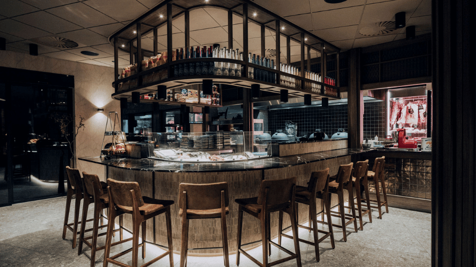 Designer Hans Kuijten ontwierp het restaurant: "We hebben gekozen voor een grote open keuken met daaraan een foodbar met de verse producten. Daar kun je tappen en happen terwijl je de koks aan het werk ziet. In de vitrines zie je de verse producten liggen, zoals je vaak in Barcelona ziet. Dit gevoel van kwaliteit loopt door in de hele zaak."
