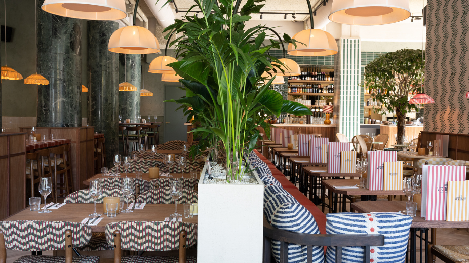 Het interieur van Vegitalian Rotterdam is een mix tussen kleurrijk en modern, gecombineerd met Italiaanse vintage elementen. Het pand kenmerkt zich door de hoge plafonds, rauwe look & feel en veel lichtinval. De details zitten in de groen marmeren tegels, de antieke houten deuren en niet te vergeten het vintage meubilair dat zorgvuldig is gekozen voor deze locatie.