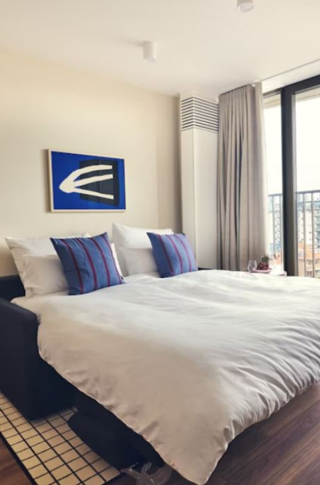 Het aparthotel heeft 66 studio's, verspreid over acht verdiepingen. Deze variëren van studio’s met één slaapkamer tot tweeslaapkamerappartementen en hotelkamers. Alle studio's hebben een keuken, een balkon en sommige kamers hebben een extra zithoek. Het hotel wordt op afstand beheerd door NUMA, waardoor er geen personeel 24/7 aanwezig is.