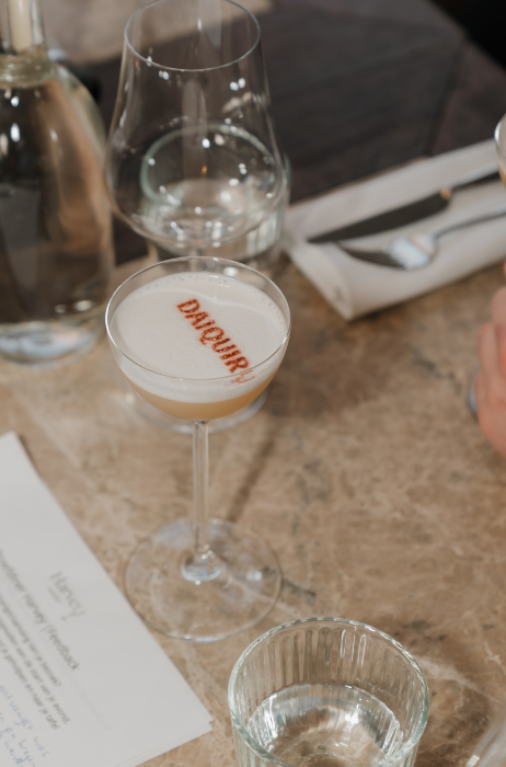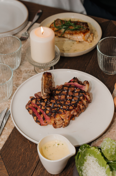 Op het menu vind je klassiekers als coquille crudo en flat iron steak met rode wijnjus. Ook aan vegetariërs is gedacht, met opties als knolselderij-"filet" met pompoen en tijmjus. Daarnaast is er een uitgebreide kaart met snacks, cocktails en wijnen. Van een feestelijke Raspberry Rhapsody tot The Chairman, gecombineerd met snacks als bitterballen, kazen van Het Kaasatelier en garnalenkroketjes.