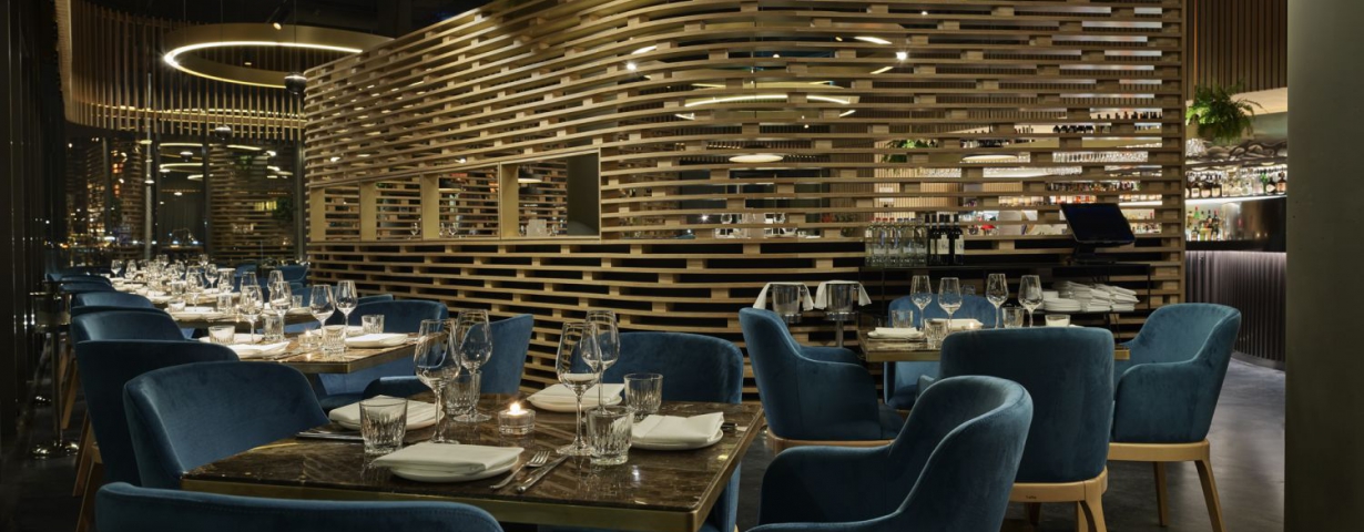 Het cocktail- en wijnmenu neemt gasten ook mee op een trip langs het Mediterrane gebied. Zo symboliseert het wijnmenu de reis langs de Mediterrane kust: van de unieke wijnen uit Kroatië en Griekenland tot de klassieke en complexe smaken van Spanje en Italië. Het cocktailmenu van Vitaly Alekseyev en Sergej Platonov, dat bestaat uit twaalf cocktails, is geïnspireerd op de vier belangrijkste invloeden op de Mediterrane cuisine: Italië en haar befaamde aperitivo-cultuur, Griekenland met haar authentieke spirits en unieke terroir, Marokko met haar variatie aan specerijen en kruiden en Spanje met de enorme invloed die het land met haar druivenspirits heeft geleverd op de barindustrie.
