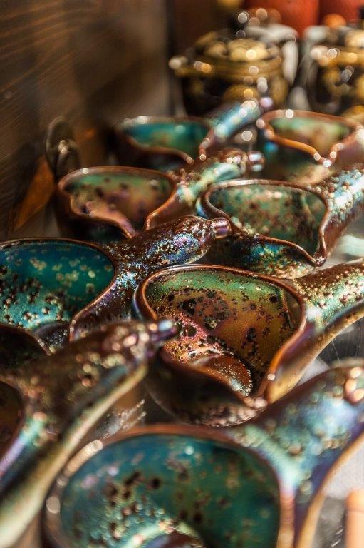 Cultuur/kunstobject: servies is gebaseerd op de fleskalebas, o.a. symbool voor geluk en vruchtbaarheid